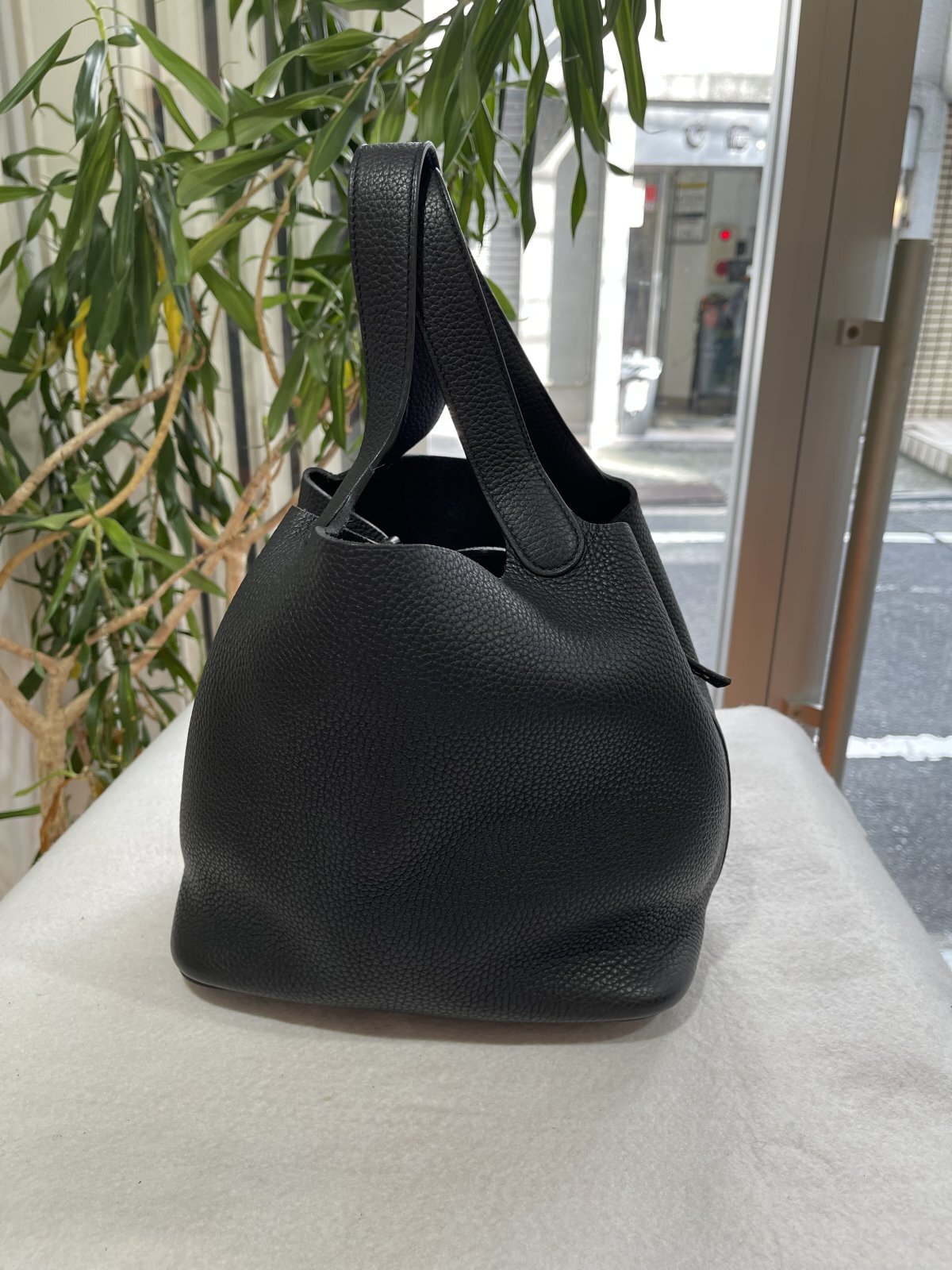 【新品同様品】HERMES エルメス ピコタンロック 22 MM トリヨンクレマンス ブラック シルバー金具 D刻印 中古 ハンドバッグ レディース 女性用 ブランド 本革 レザー カーフ 黒 希少 レア プレゼント ギフト バック