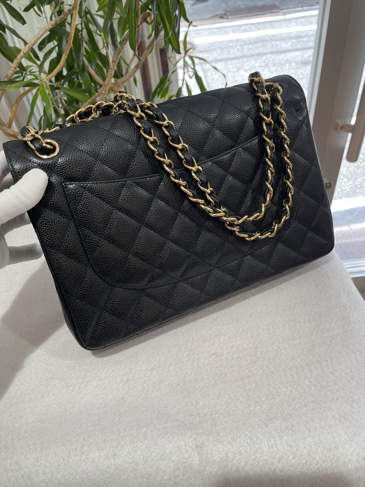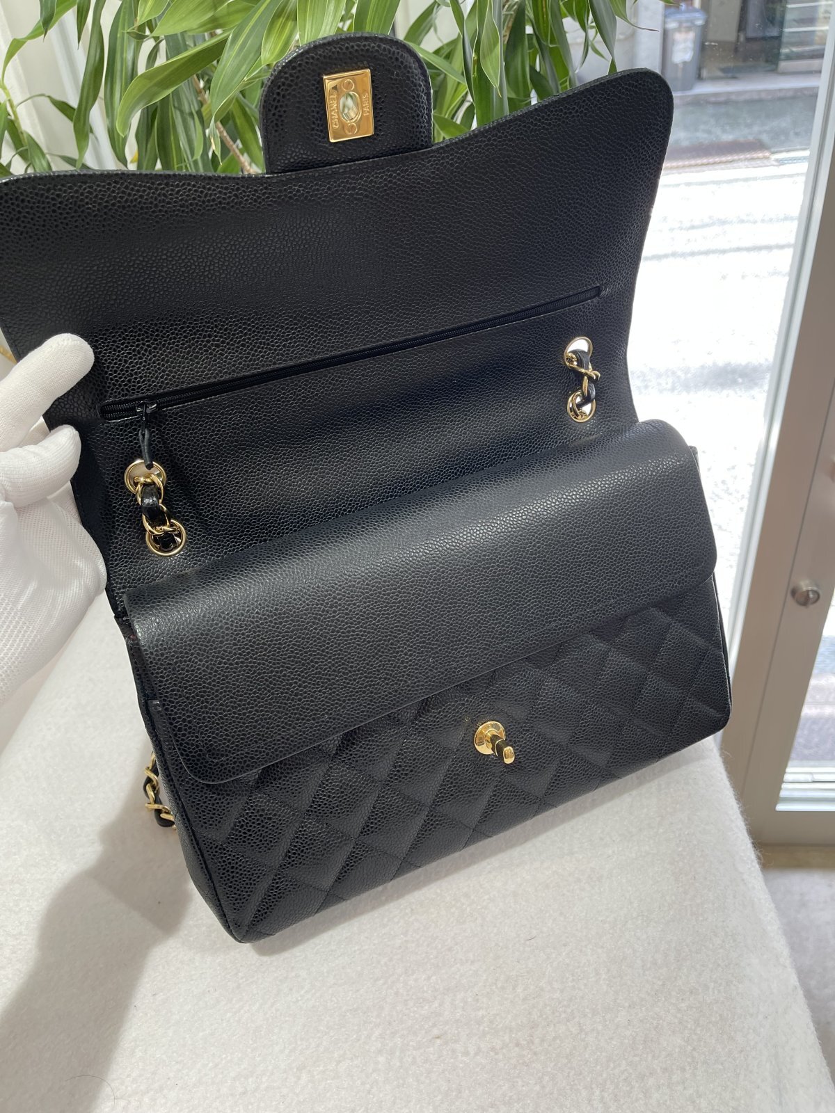 【新品同様品】CHANEL シャネル A58600 マトラッセ 30 チェーンショルダー キャビアスキン ブラック ゴールド金具 Wフラップ 20番台 中古 ハンドバッグ デカマトラッセ ダブルフラップ レディース 女性用 黒 ブランド レザー 希少 レア プレゼント ギフト バック [1923]
