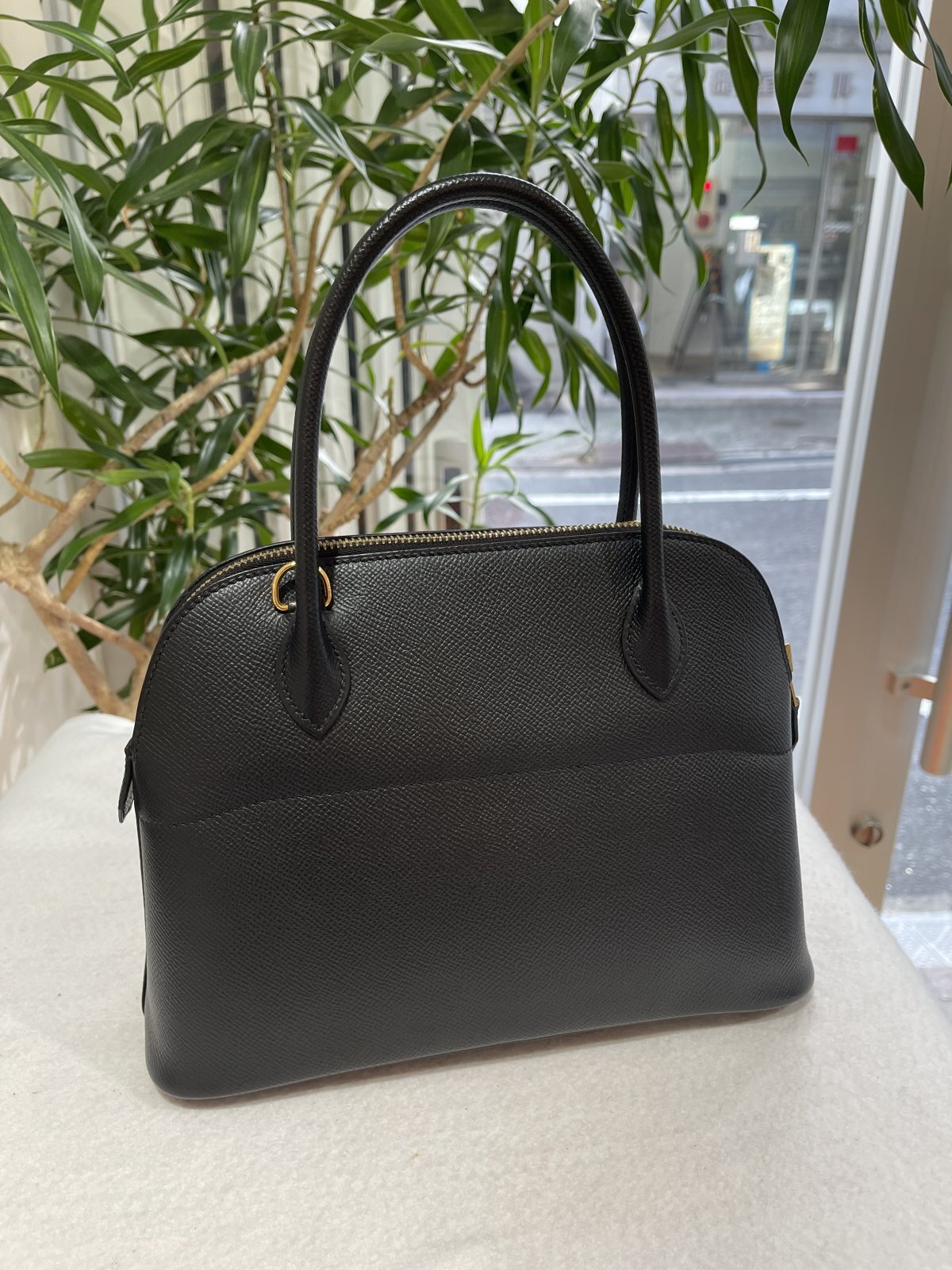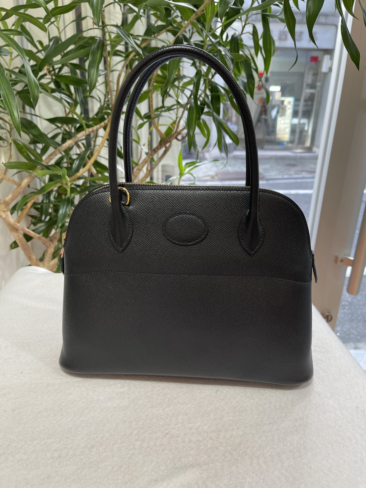 HERMES「ボリード 27」です。ヴォーエプソン素材・カラーはブラック・シルバー金具・Z刻印(2021年製造)になります。エルメスを代表するアイコンバッグ・ボリード27cmが入荷致しました。ブラックカラー・ゴールド金具と人気の高い組み合わせとなり、売切れ必至のレアアイテムになりますので、お探しの方はお早めにどうぞ!ユーズド品の為、四隅にうっすらとしたスレ、金具の小傷、内部素材は非常にデリケートな為、うっすらとしたスレ・汚れ・爪傷・押し跡程度は見受けられますが、使用感も少なくコンディションは良好です。箱(ダメージ有り)・保存袋・ショルダーストラップ・レインカバー・ショップカード(2021年3月国内正規購入品・ショップ印有り)が付属しております。詳細につきましては、お気軽にお問合せ下さいませ。ショルダーストラップ約90cm