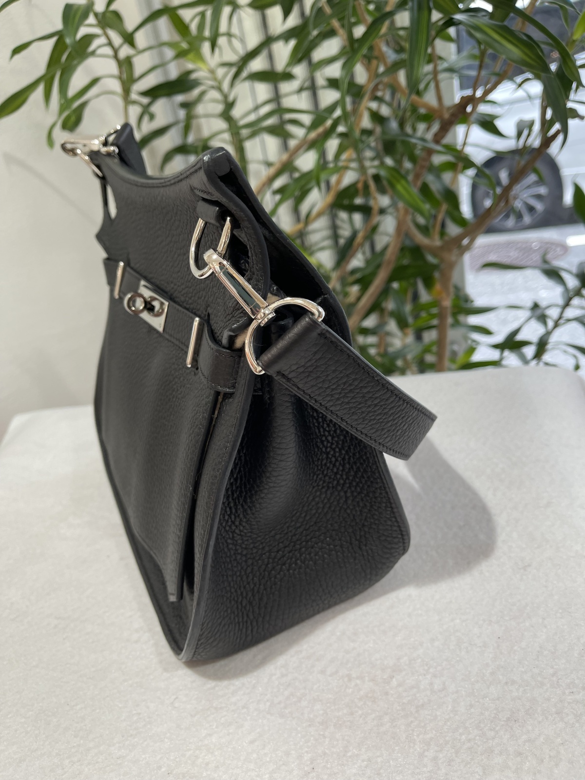 HERMES・ショルダーバッグ「ジプシエール28」です。トリヨンクレマンス素材・カラーはブラック・シルバー金具・O刻印□(2011年製造)になります。大人気ブラックカラー・ジプシエール28cmが入荷致しました。アクティブにお使いいただける斜め掛けショルダーバッグです。売り切れ必至のレアアイテムになりますので、お探しの方はお早めにどうぞ!ユーズド品の為、四隅にうっすらとしたスレ、金具の小傷、表面・内部にもうっすらとしたスレ・汚れ・押し跡程度は見受けられますが、使用感も少なくコンディションは良好です。保存袋・ショルダーストラップが付属しております。詳細につきましては、お気軽にお問合せ下さいませ。ショルダーストラップ約103〜117cm