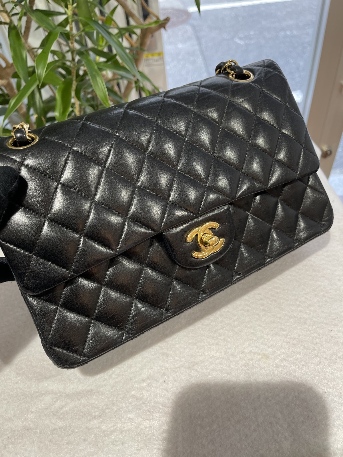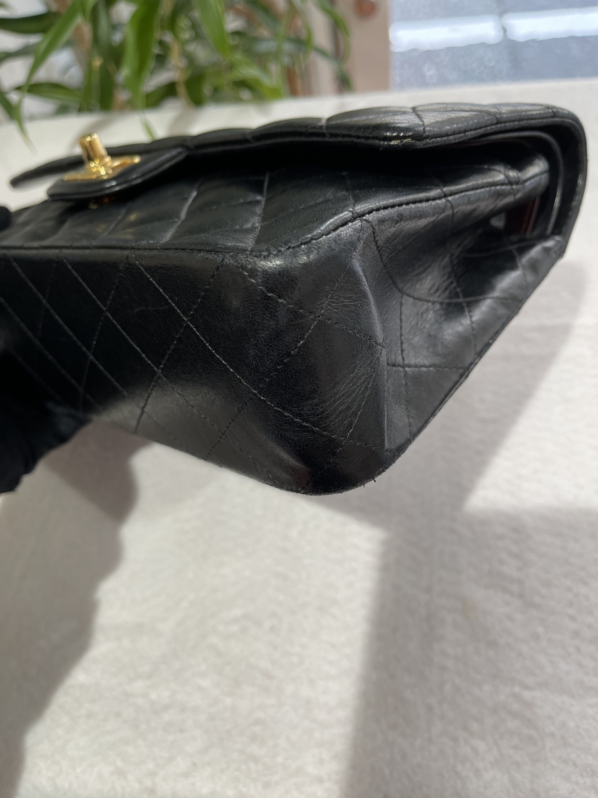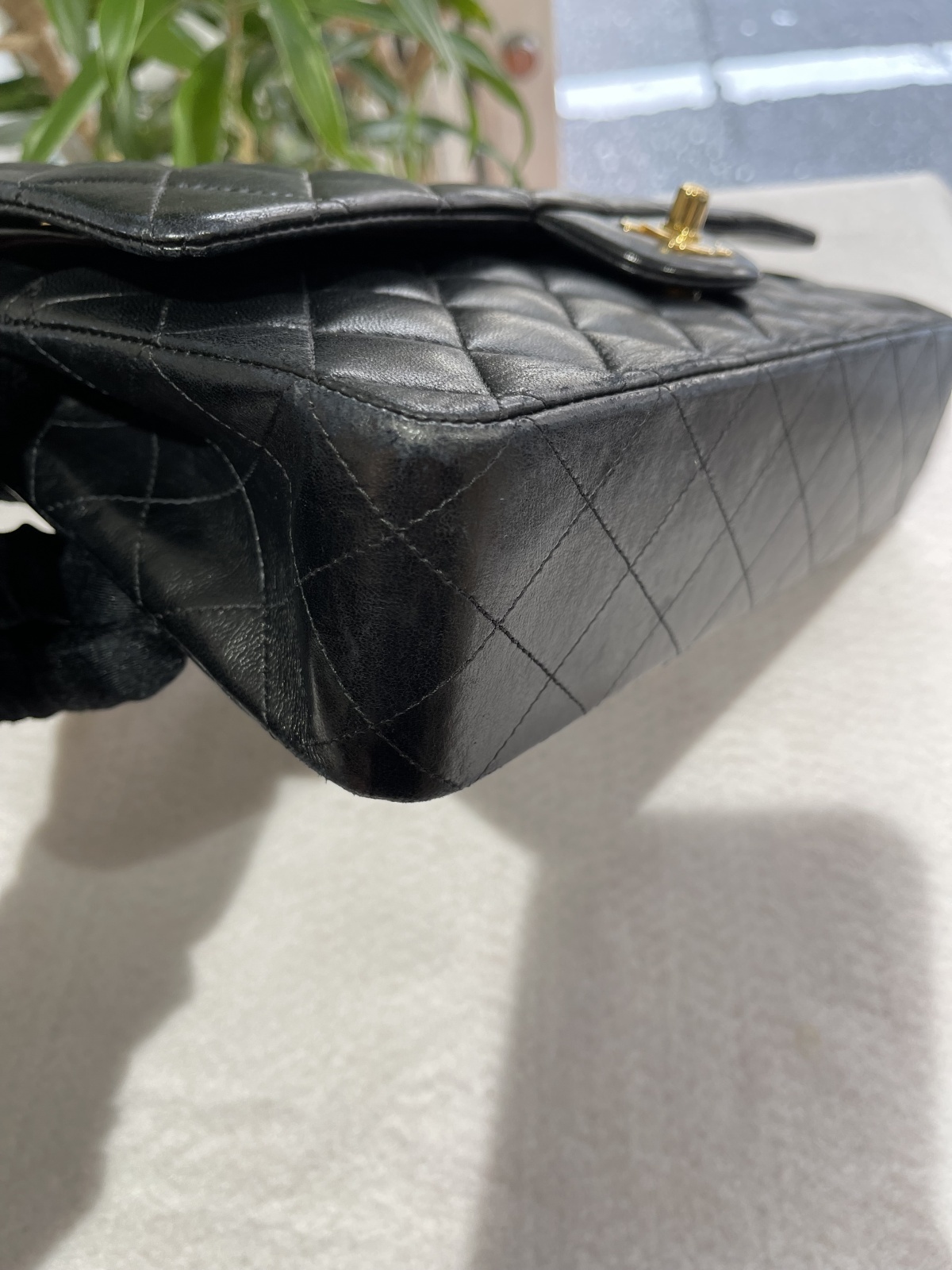 【美品】CHANEL シャネルA01112 マトラッセ 25 チェーンショルダー ラムスキン ブラック ゴールド金具 Wフラップ 16番台 中古 ハンドバッグ ショルダーバッグ ダブルフラップ レディース 女性用 黒 ブランド レザー カーフ 希少 レア プレゼント ギフト バック