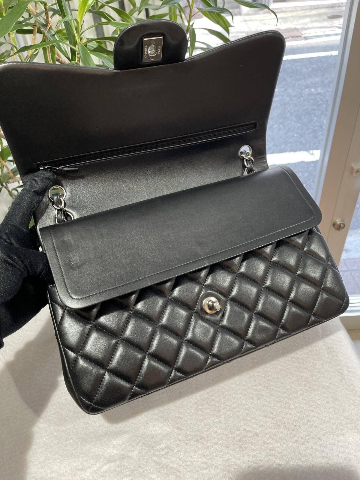 【新品同様品】CHANEL シャネル A58600 マトラッセ 30 チェーンショルダー ラムスキン ブラック シルバー金具 Wフラップ 17番台 中古 ハンドバッグ デカマトラッセ ダブルフラップ レディース 女性用 黒 ブランド レザー カーフ 希少 レア プレゼント ギフト バック