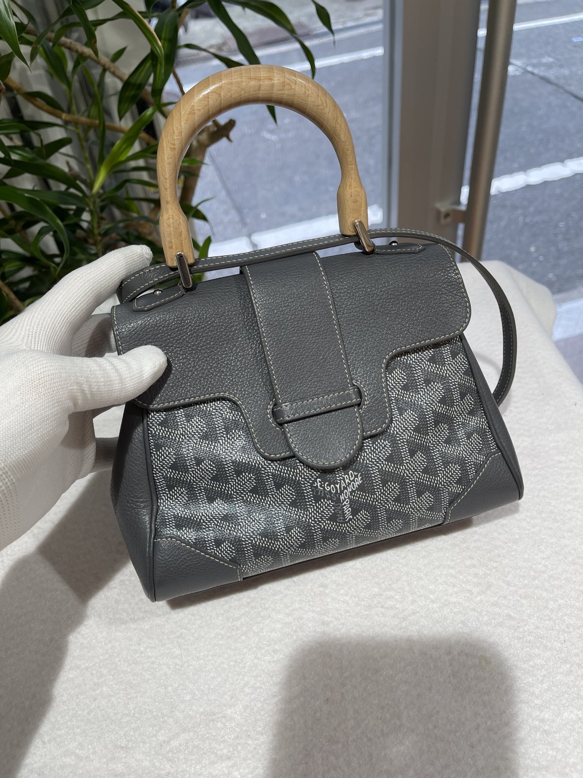 【美品】Goyard ゴヤール サイゴン ミニ 2WAY ハンドバッグ ヘリンボーン PVCコーティングキャンバス×レザー グレー シルバー金具 中古 ハンドバッグ ショルダーバッグ 2WAYバッグ レディース 女性用 ブランド 黒 希少 レア プレゼント バック