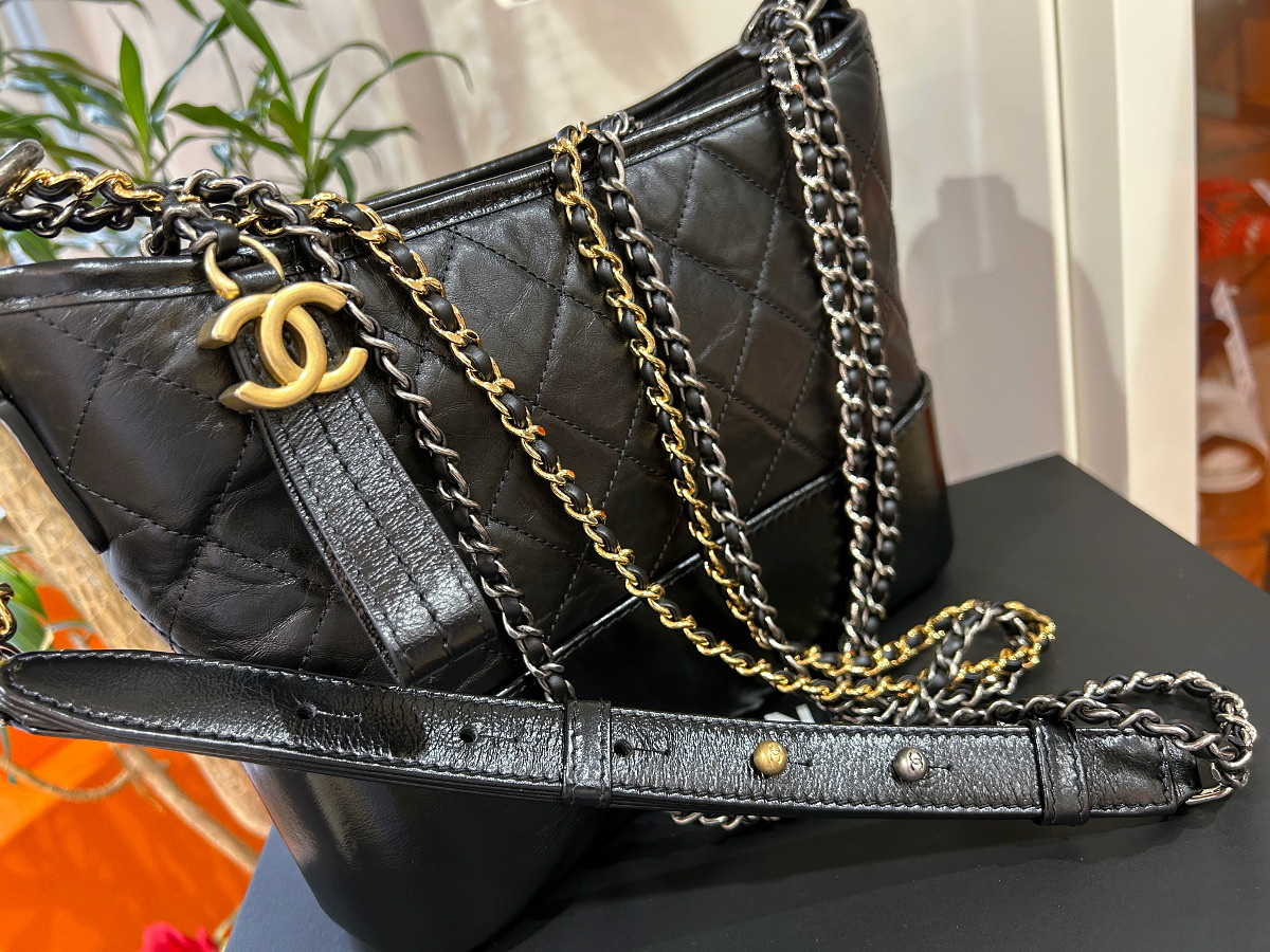 【新品同様品】CHANEL シャネル AS1521 ガブリエル ドゥ ホーボー ショルダーバッグ エイジドカーフスキン ブラック ゴールド×シルバー金具 29番台 中古 ハンドバッグ 2WAYバッグ レディース 女性用 黒 ブランド レザー 希少 レア プレゼント ギフト バック