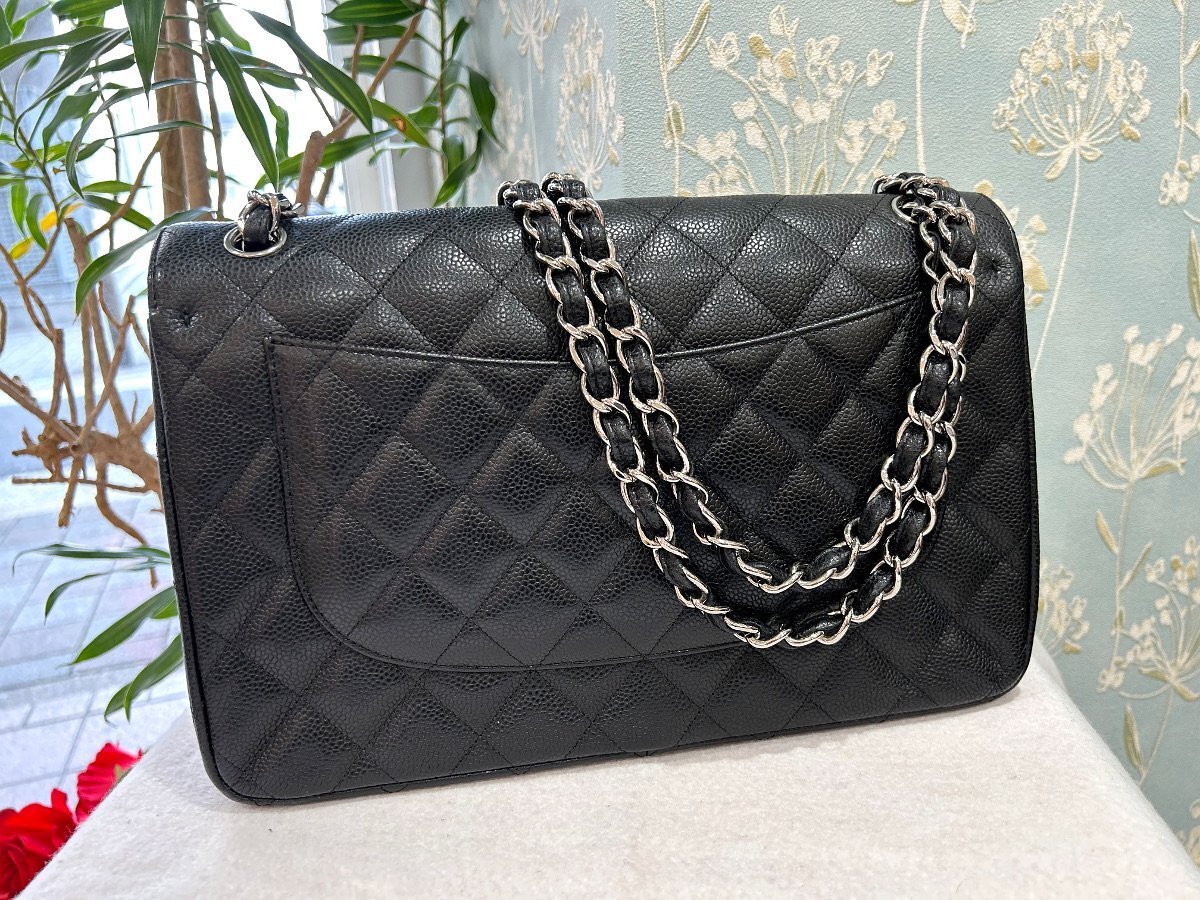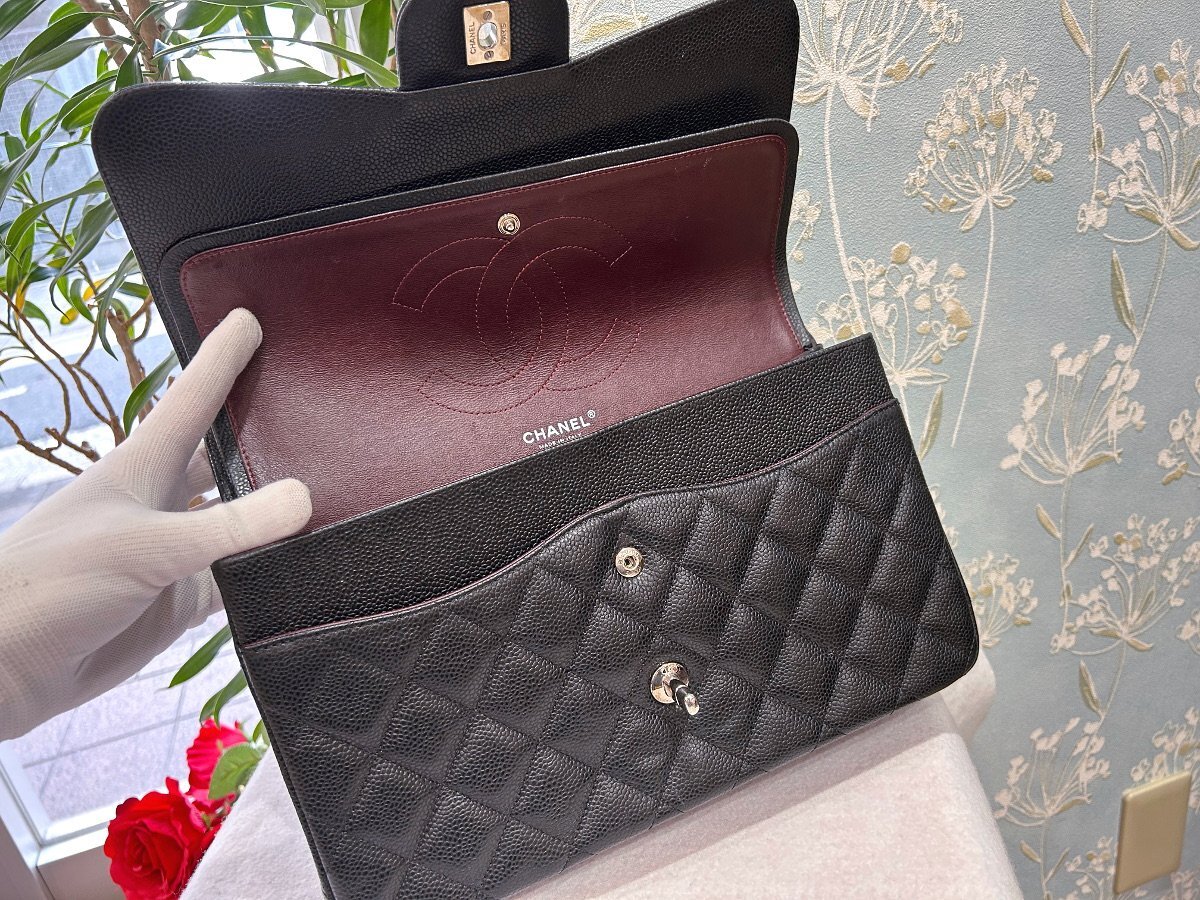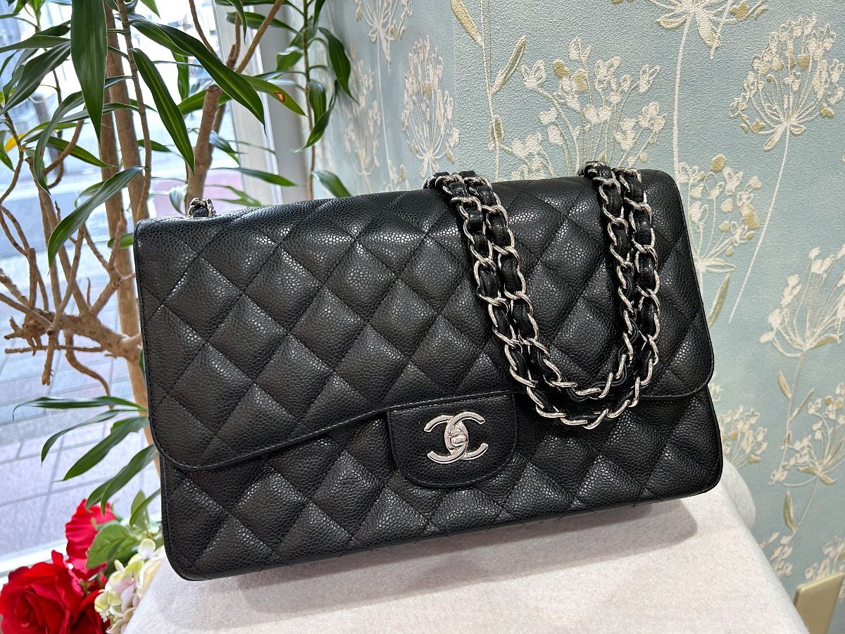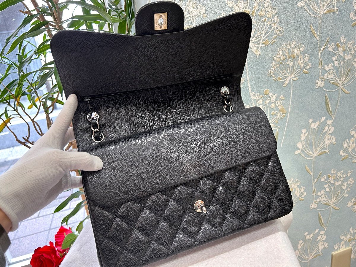 【極美品】CHANEL シャネル A58600 マトラッセ 30 チェーンショルダー キャビアスキン ブラック シルバー金具 Wフラップ 23番台 中古 ハンドバッグ デカマトラッセ ダブルフラップ レディース 女性用 黒 ブランド レザー 希少 レア プレゼント ギフト バック