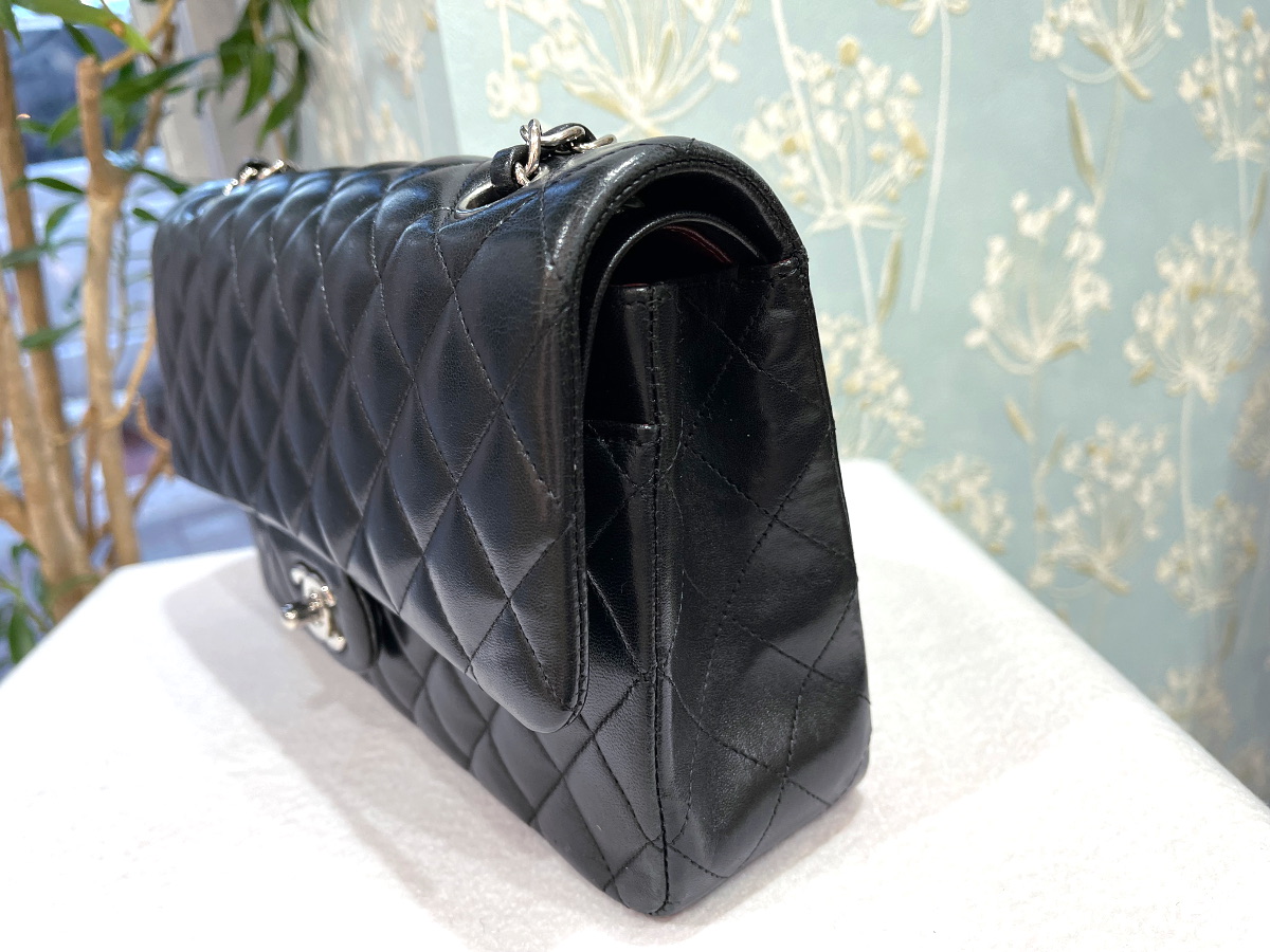 CHANEL「A01112 マトラッセ 25 チェーンショルダー」です。ラムスキン素材・カラーはブラック・シルバー金具・ダブルフラップ・ダブルチェーンになります。永遠の憧れ、シャネルの王道マトラッセ・全ての女性の夢といっても過言ではない、シャネルのアイコンバッグ。しっとりと手に吸い付くような最高級のラムスキンに、輝くシルバー金具が都会的で洗練された印象を与えます。シーンを選ばない「25cmサイズ」:長財布やスマホが綺麗に収まり、デイリーから結婚式、パーティーまで幅広く活躍します。ダブルフラップ仕様:型崩れしにくく、開けるたびに気品を感じる二重蓋。中身もしっかり保護されます。 自分へのご褒美に、一生モノのパートナーを迎えませんか?ユーズド品の為、四隅にスレ、金具の小傷、表面・内部にもうっすらとしたスレ・汚れ・爪傷・押し跡などは見受けられますが、使用感も少なくコンディションは良好です。シリアルシールは残っております。保存袋が付属しております。詳細につきましては、お気軽にお問い合せ下さいませ。ショルダーストラップ・ダブル約55cm・シングル約93cm
