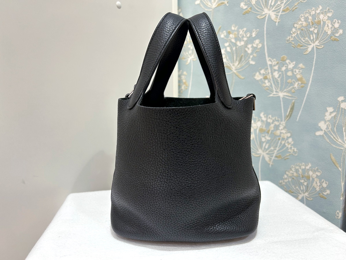 【美品】HERMES エルメス ピコタンロック 18 PM トリヨンクレマンス ブラック シルバー金具 D刻印 中古 ハンドバッグ レディース 女性用 ブランド 黒 本革 レザー カーフ 希少 レア プレゼント ギフト バック